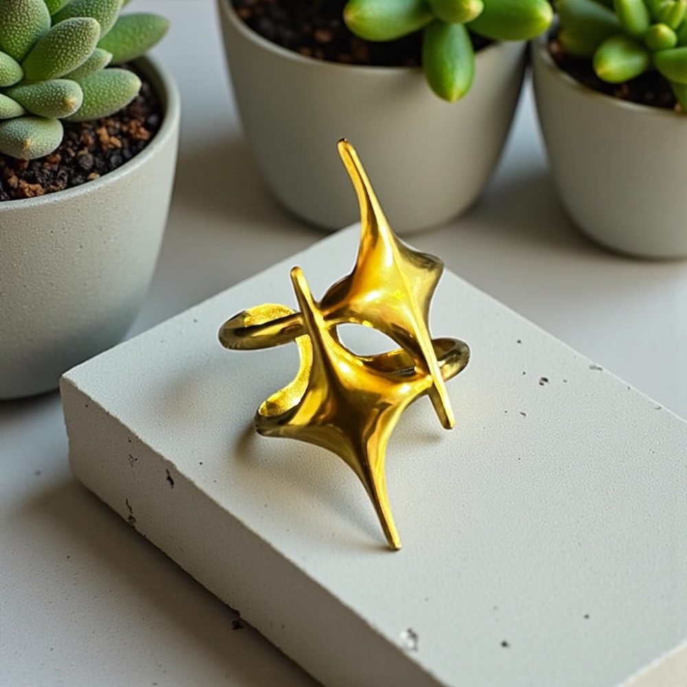 Ατσάλινο δαχτυλίδι με μοντέρνο περίτεχνο σχέδιο σε χρυσό χρώμα