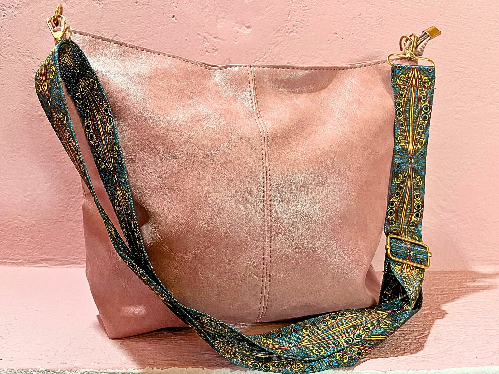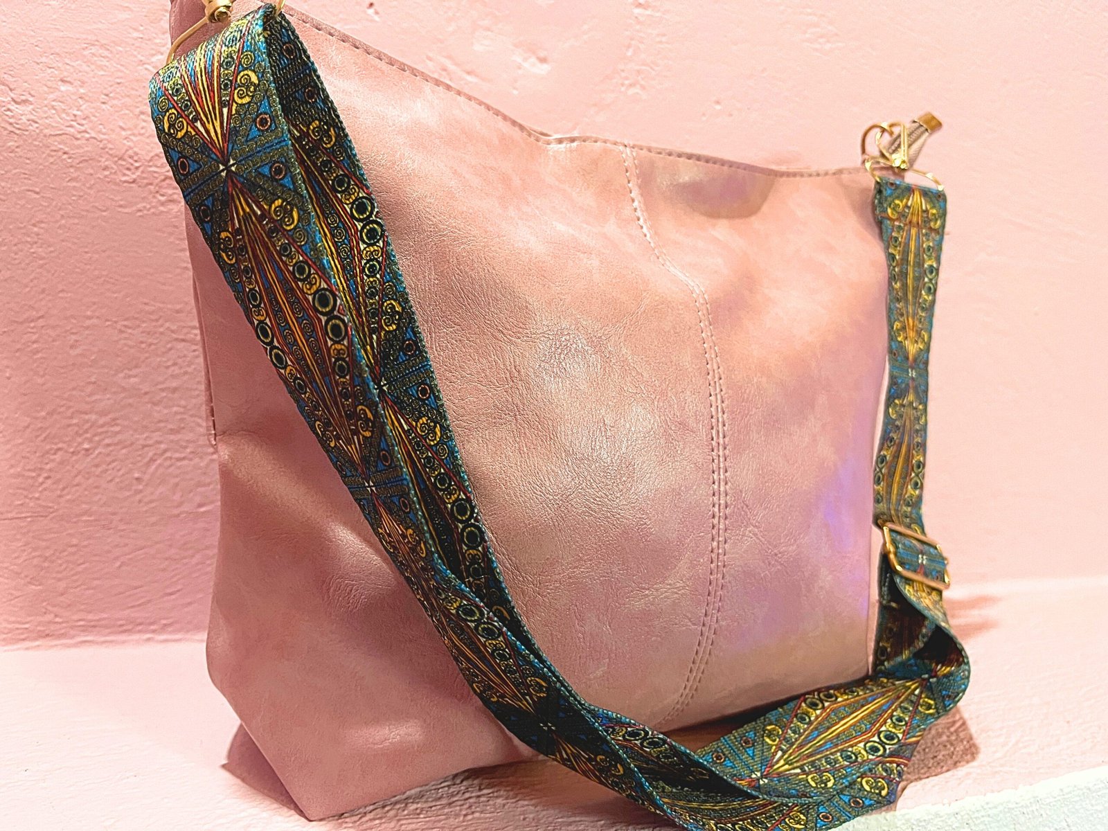 Τσάντα ροζ με συνθετικό δέρμα με ιδιαίτερο λουρί