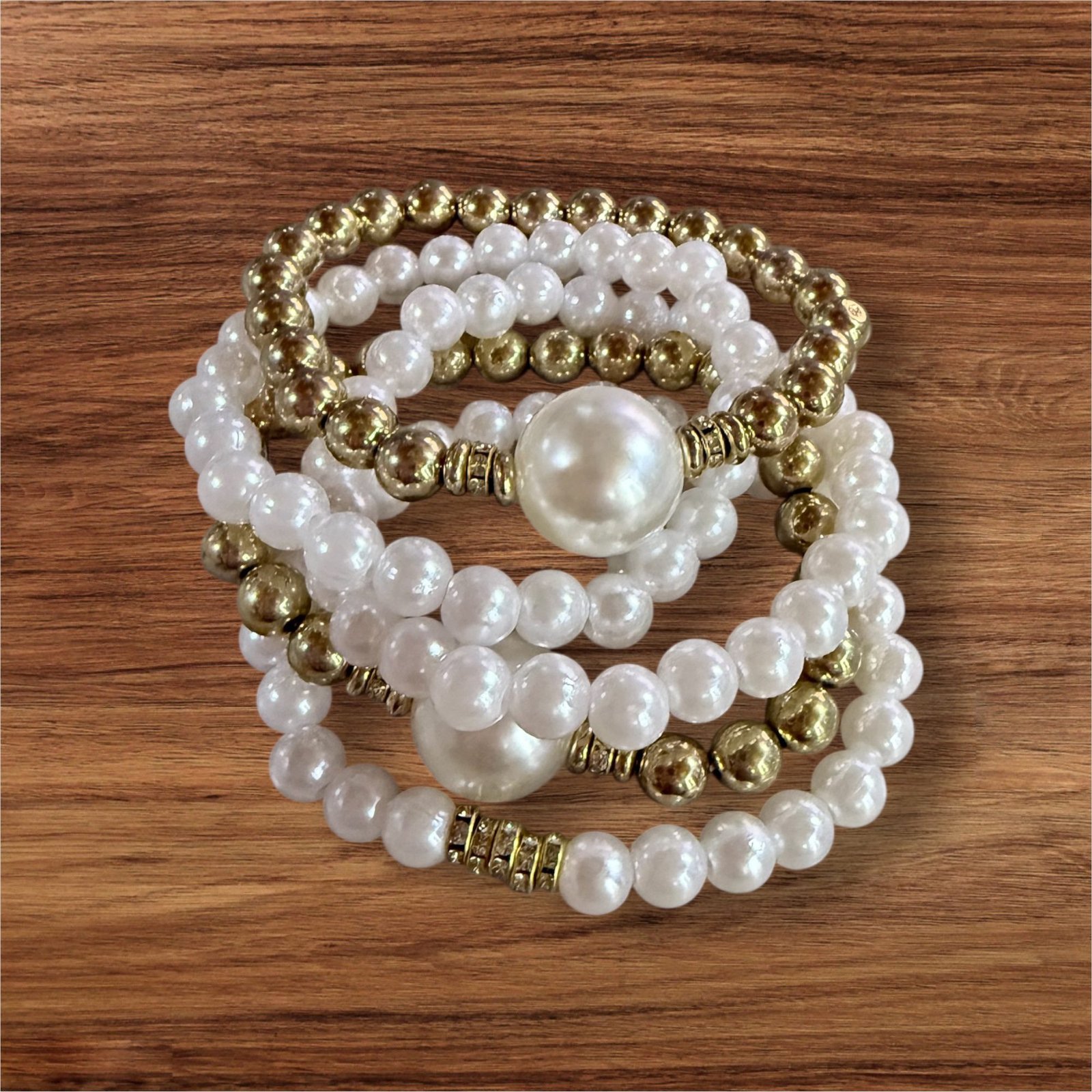 Βραχιόλι με πέρλες σε διχρωμία χρυσό και άσπρο